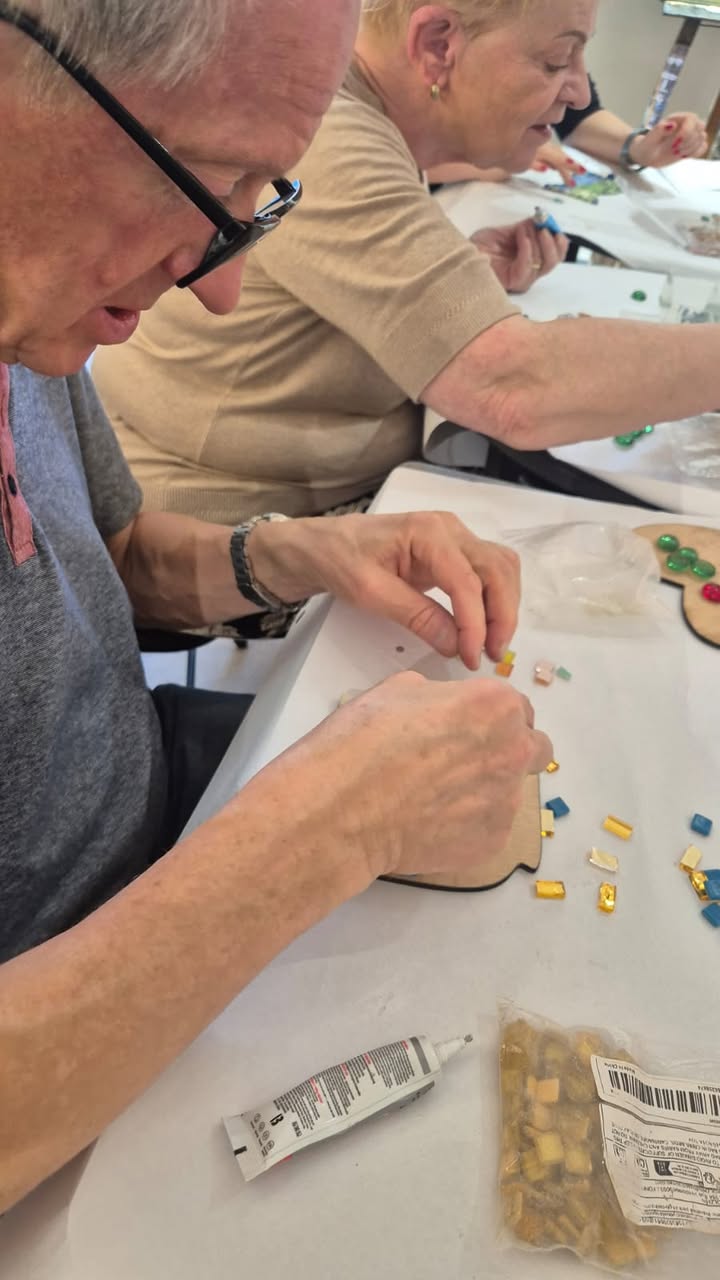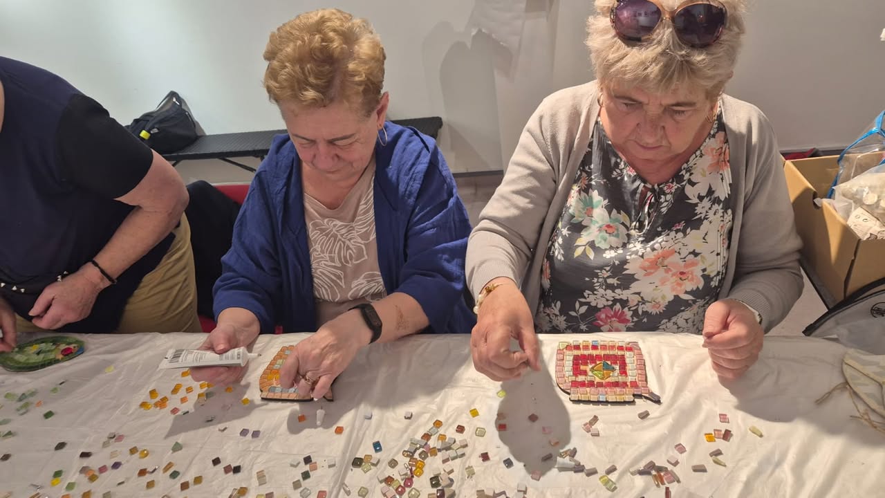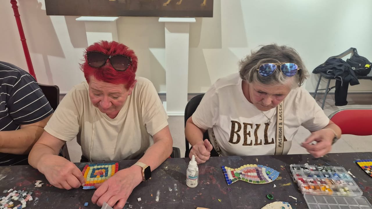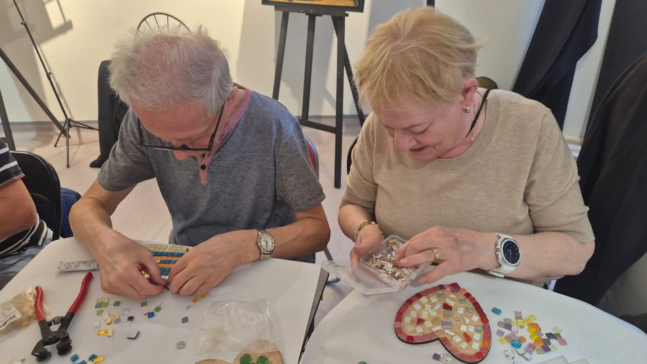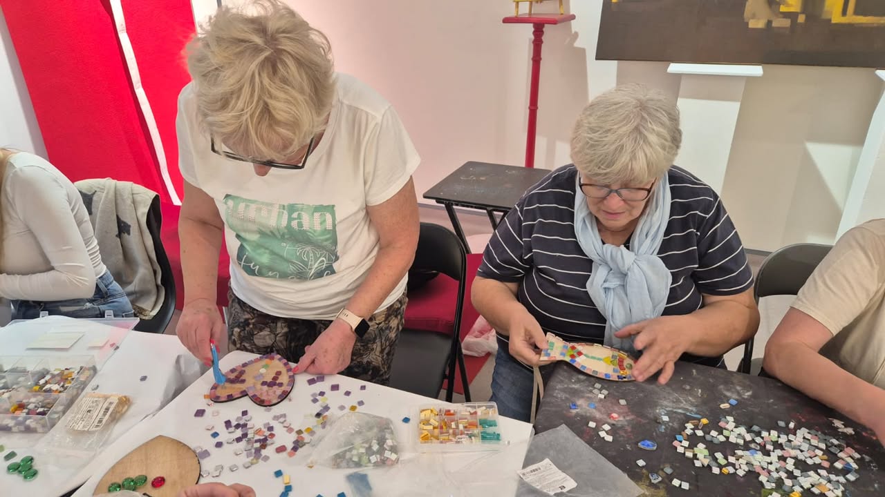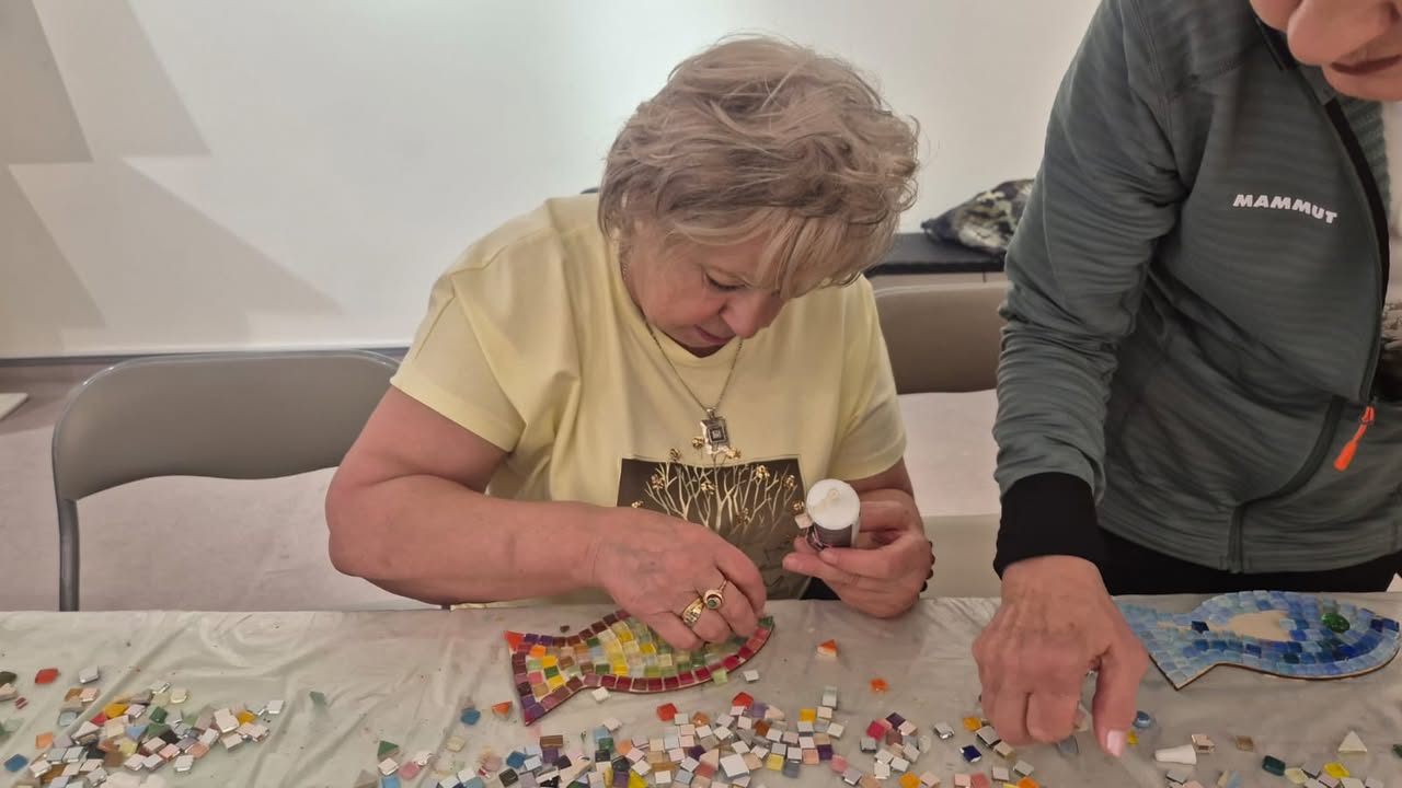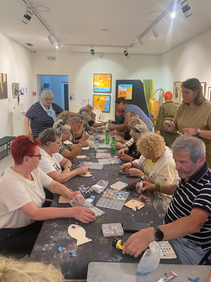 Rano uczestnicy rozpoczęli dzień od zajęć z tworzenia mozaiki, które ponownie połączyły ich z portugalskimi seniorami. Wspólna praca nad kolorowymi wzorami okazała się nie tylko artystycznym wyzwaniem, ale też pięknym doświadczeniem międzypokoleniowego dialogu. Każdy kafelek, każdy kolor miał tu swoje znaczenie – symbolizował wspomnienia, emocje i spotkanie kultur.