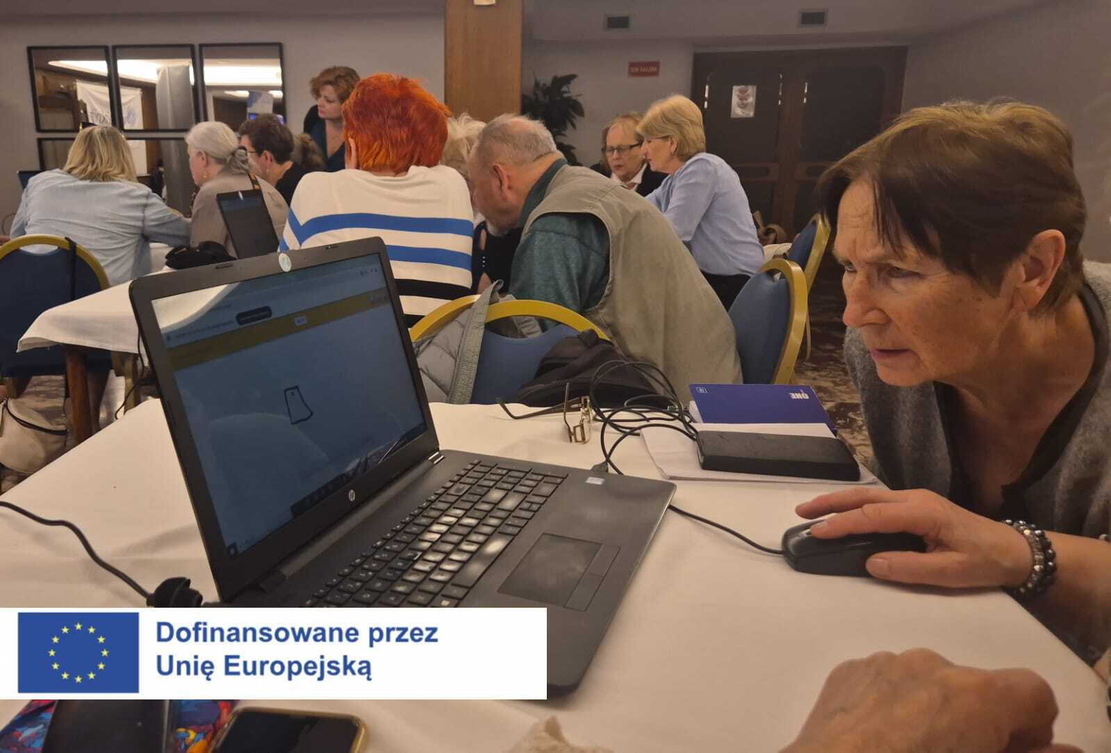 - prezentacji o tematyce cyberprzestępstwa zawierającej praktyczne rady dla seniorów (jak odpowiednio zabezpieczyć swoje urządzenie, jak unikać kradzieży danych),