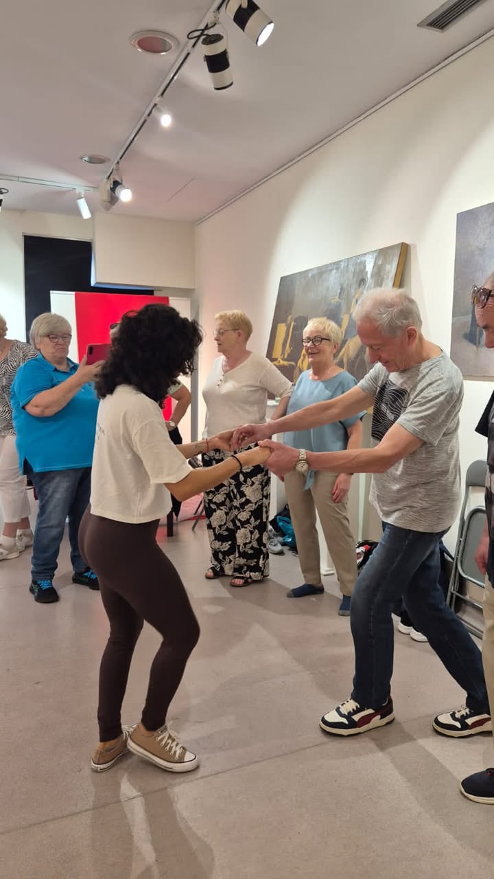 Poranek upłynął w tanecznej atmosferze – uczestnicy wzięli udział w warsztatach z samby prowadzonych przez portugalskich seniorów. Wspólny taniec przy dźwiękach tradycyjnej muzyki okazał się nie tylko świetną zabawą, lecz także lekcją kultury, energii i radości życia. Samba połączyła pokolenia i udowodniła, że ruch i muzyka to uniwersalny język, który nie zna barier. 💃🪘