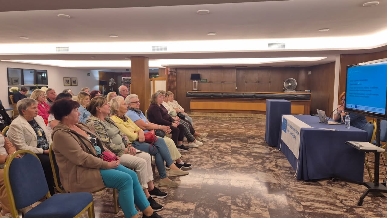 Dzisiejszy program obfitował w ciekawe zajęcia i nowe doświadczenia. Rano uczestnicy poznali działalność naszego hiszpańskiego partnera – Associació Educativa i Cultural Blue Beehive – oraz wzięli udział we wprowadzeniu do mobilności. Następnie odbyła się prezentacja „AI w codziennym życiu – wprowadzenie do sztucznej inteligencji”, która pokazała, jak nowoczesne technologie mogą wspierać codzienne funkcjonowanie osób starszych.