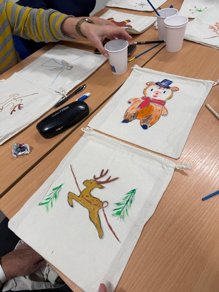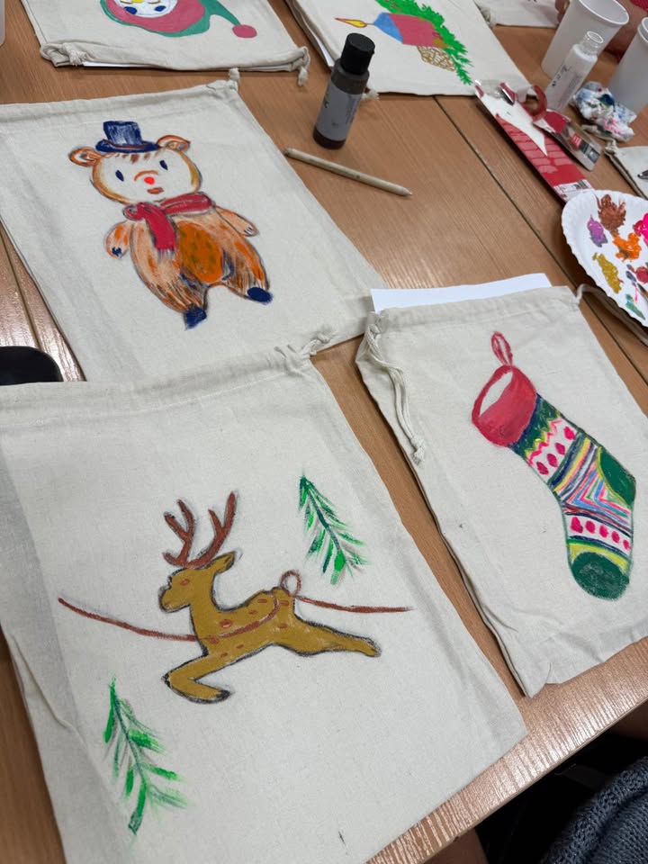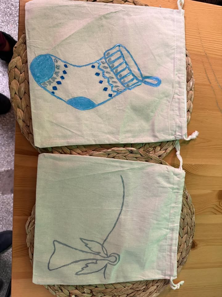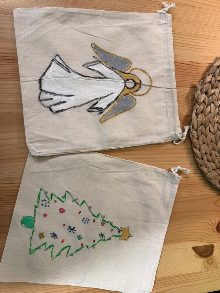 Świąteczne zajęcia z Wami sprawiają nam ogrom radości! :) Cieszymy się, że frekwencja dopisuje! Na zdjęciach efekty prac nad woreczkami świątecznymi!