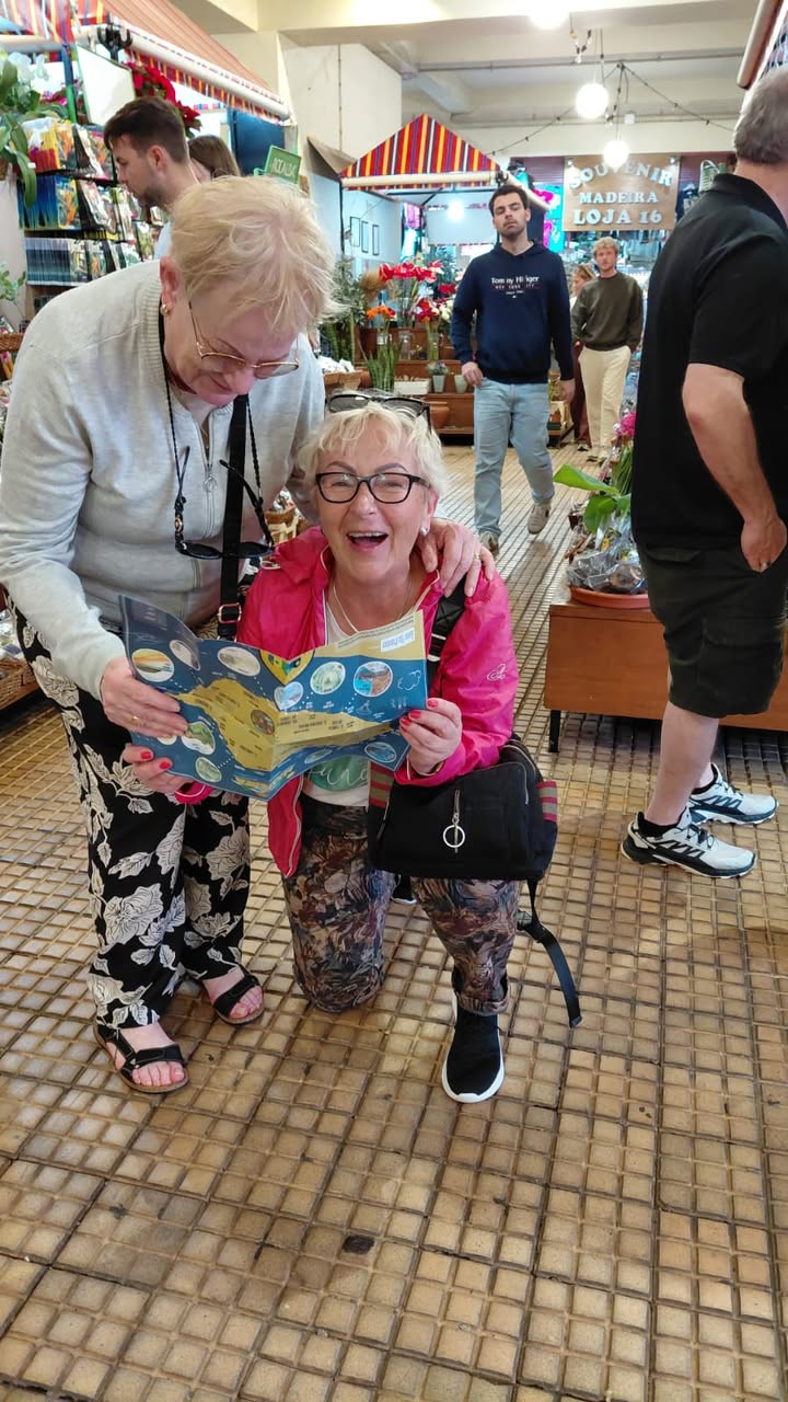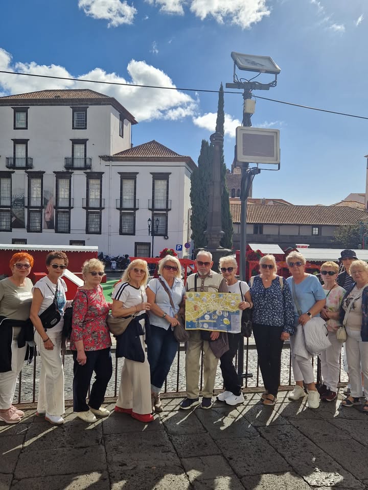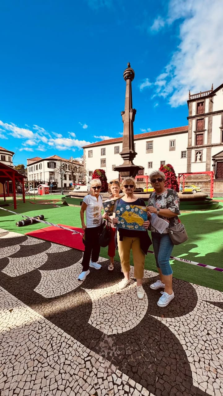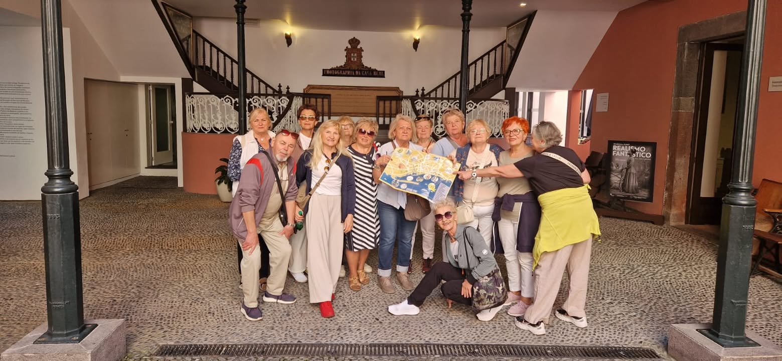 Seniorzy, podzieleni na zespoły, przemierzali ulice Funchal, skanując kody ukryte w najpiękniejszych zakątkach miasta – od kolorowych drzwi Rua de Santa Maria, przez historyczne place, po nadmorską promenadę. Każdy kod prowadził do nowego zadania: zagadki o kulturze Portugalii, quizu o lokalnej architekturze, czy kreatywnego wyzwania fotograficznego. 📱📸