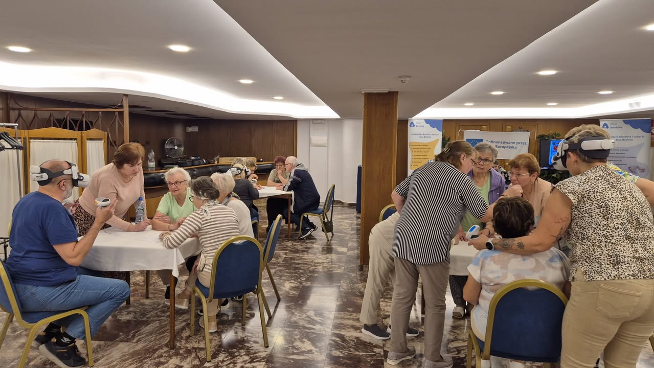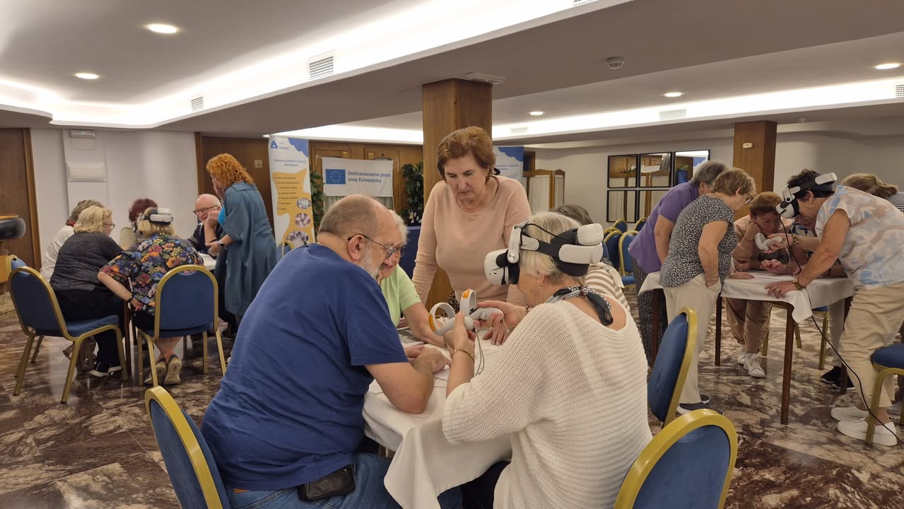 Popołudnie wypełniły zajęcia muzyczne i refleksyjne. Podczas warsztatu „AI w pracy z muzyką – tworzenie hymnu wyjazdowego” seniorzy wspólnie komponowali krótką melodię, wykorzystując aplikacje oparte na sztucznej inteligencji. Następnie, w trakcie warsztatu „Przykłady zastosowań AI w codziennym życiu seniora”, uczestnicy omawiali, jak technologia może wspierać ich w zdrowiu, komunikacji czy hobby.