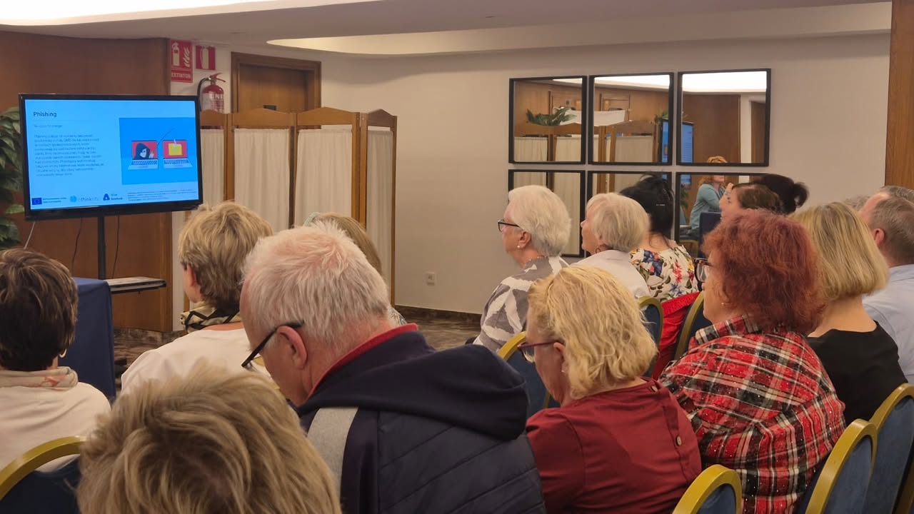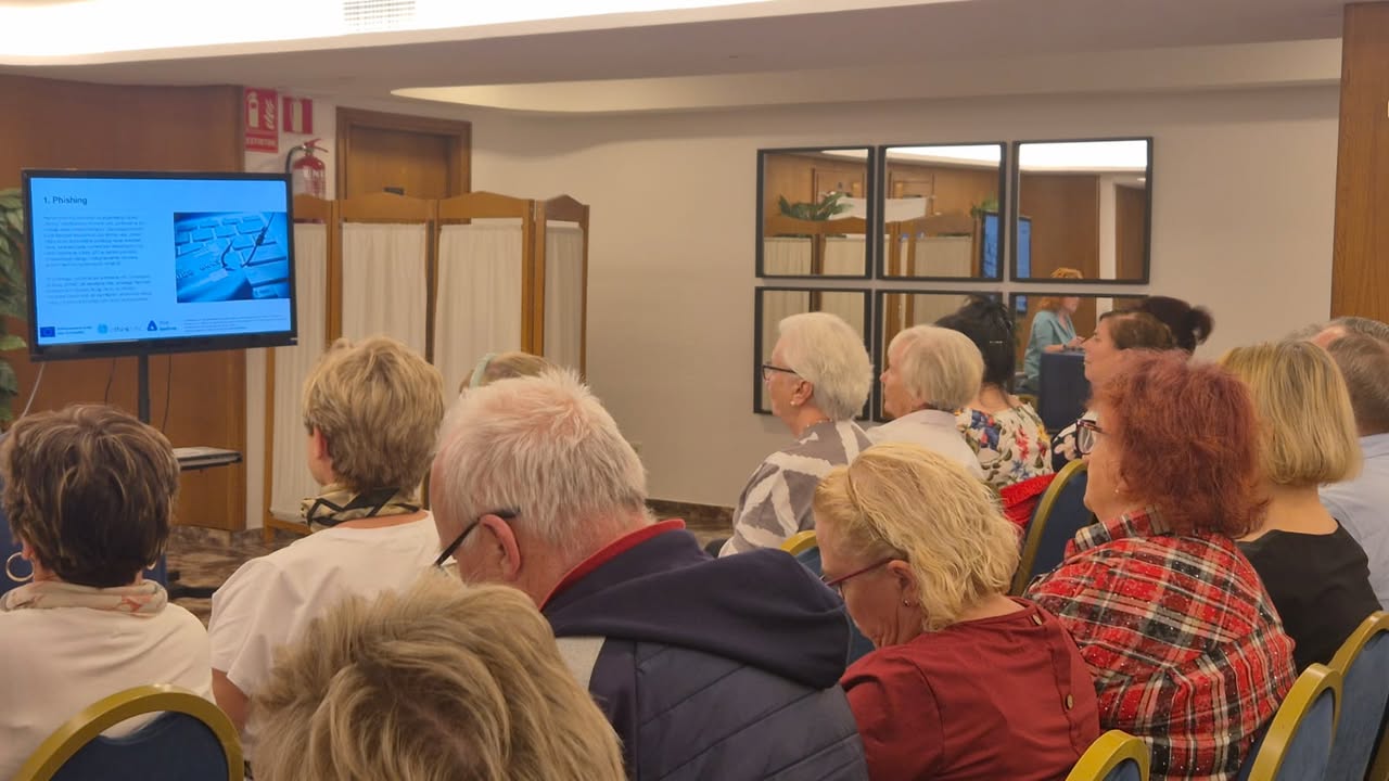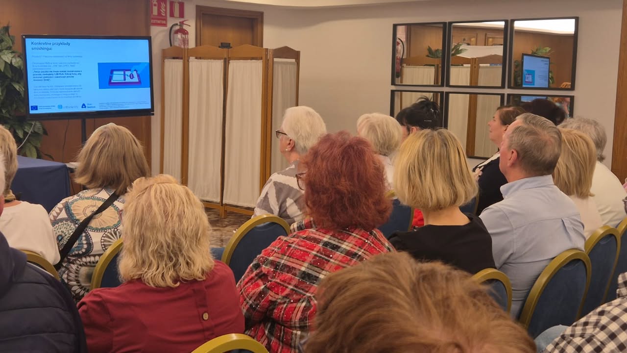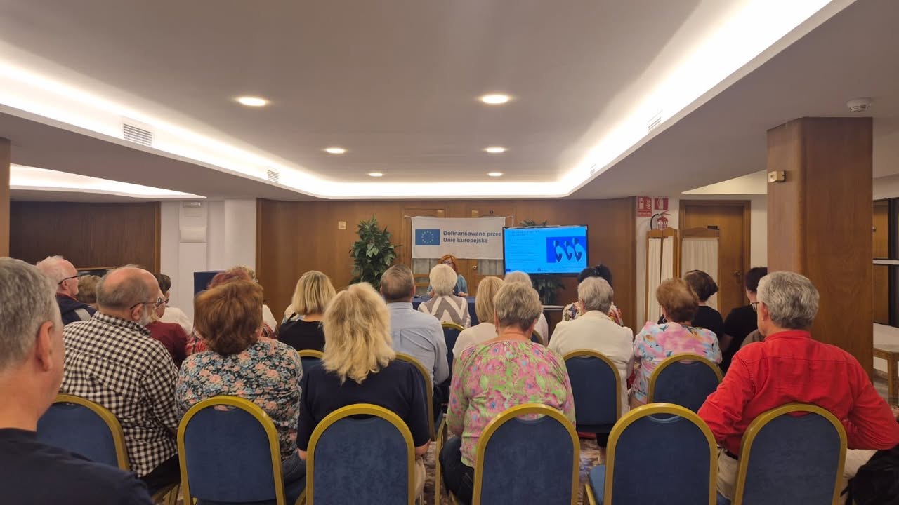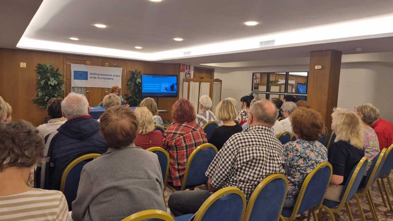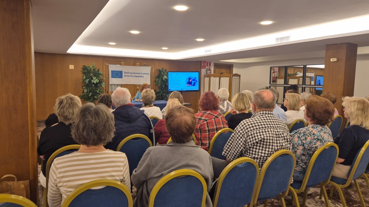 Po południu uczestnicy wysłuchali prezentacji „Normy prawne w pracy z AI”, poznając podstawowe regulacje dotyczące ochrony danych, praw autorskich i etyki w cyfrowym świecie. Kolejnym punktem programu były warsztaty „Ochrona danych osobowych w pracy z AI” – niezwykle ważne w kontekście bezpieczeństwa cyfrowego seniorów.
