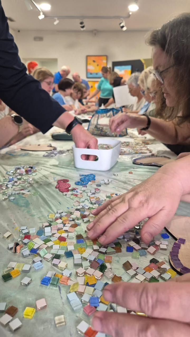 Po powrocie rozpoczął się blok pracy z iPadami. Najpierw seniorska grupa skupiła się na edycji zdjęć w aplikacji Snapseed, testując korekty barw, kontrastu i ekspozycji. Każdy mógł porównać wersję przed i po, co dawało natychmiastowy efekt uczenia się poprzez praktykę. Gdy uczestnicy oswoili się już z pierwszymi narzędziami cyfrowymi, przeszliśmy do Procreate, gdzie tematycznie wróciliśmy do płytek. Seniorzy tworzyli własne projekty azulejos, pracując z warstwami, kolorami i różnymi pędzlami. Wiele powstałych kompozycji nawiązywało do porannych prac – ryby, morskie motywy i geometryczne układy płynnie przeniosły się na ekran.